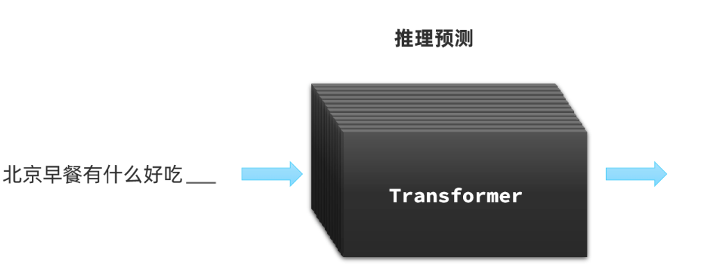 LLM 的 推理预测:LLM 训练 Transformer 时,会尝试输入一些文本、音频、图片,让后 Transformer 推理接下来应该是什么内容。