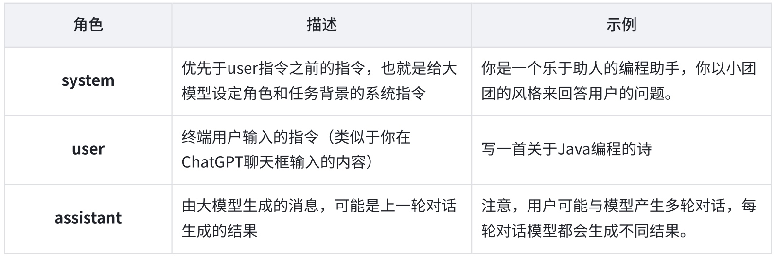 - content:消息内容。 也叫做提示词(Prompt),发送给大模型的指令。