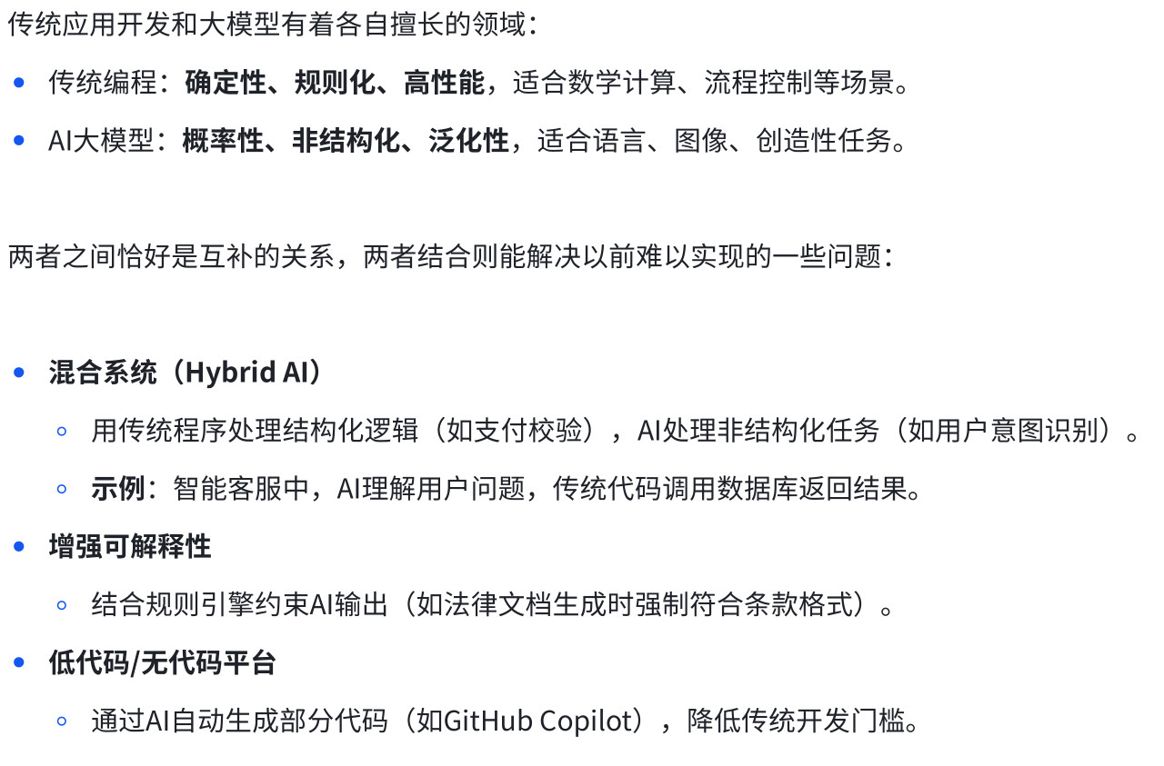 传统应用:基于明确规则的逻辑设计,确定性执行,可预测结果。