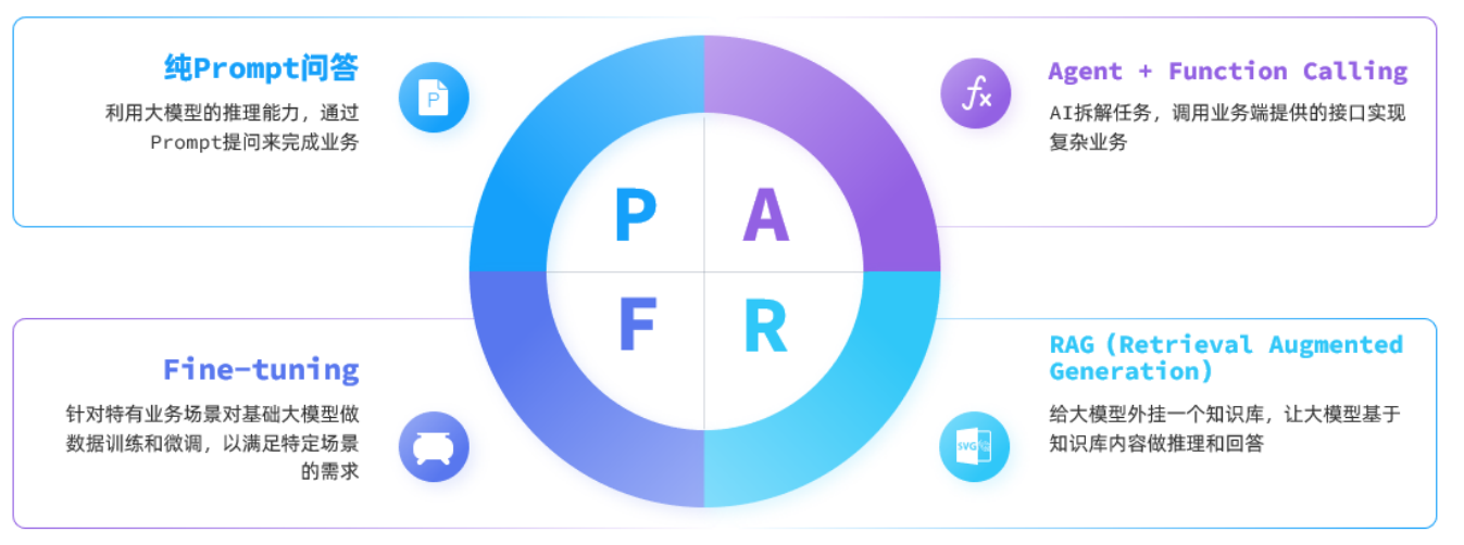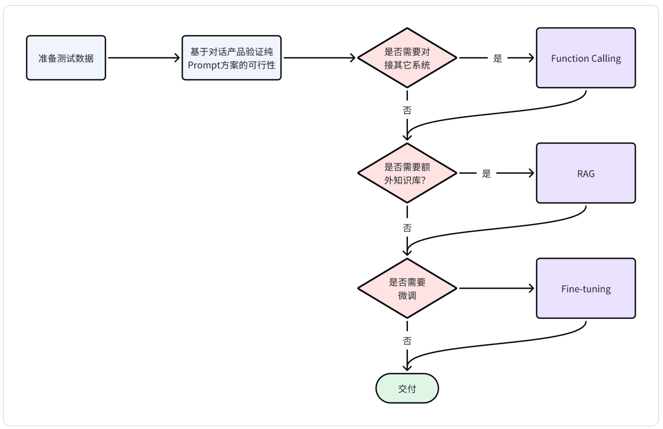 开发成本由低到高:Prompt < FunctionCalling < RAG < Fine-tuning