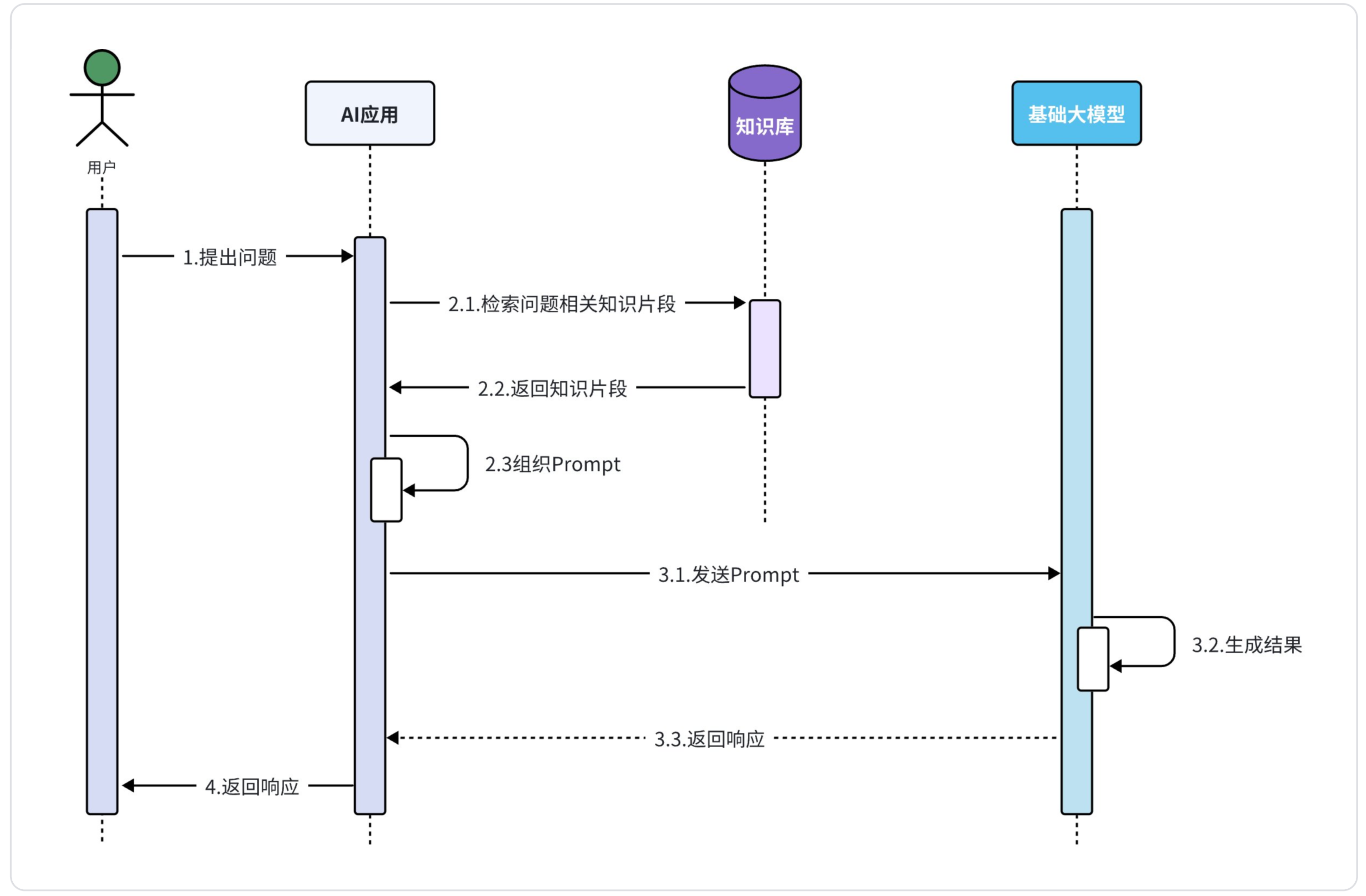 - 组合提示词:检索到的片段 和 用户提问 组成提示词,形成更丰富的上下文信息。